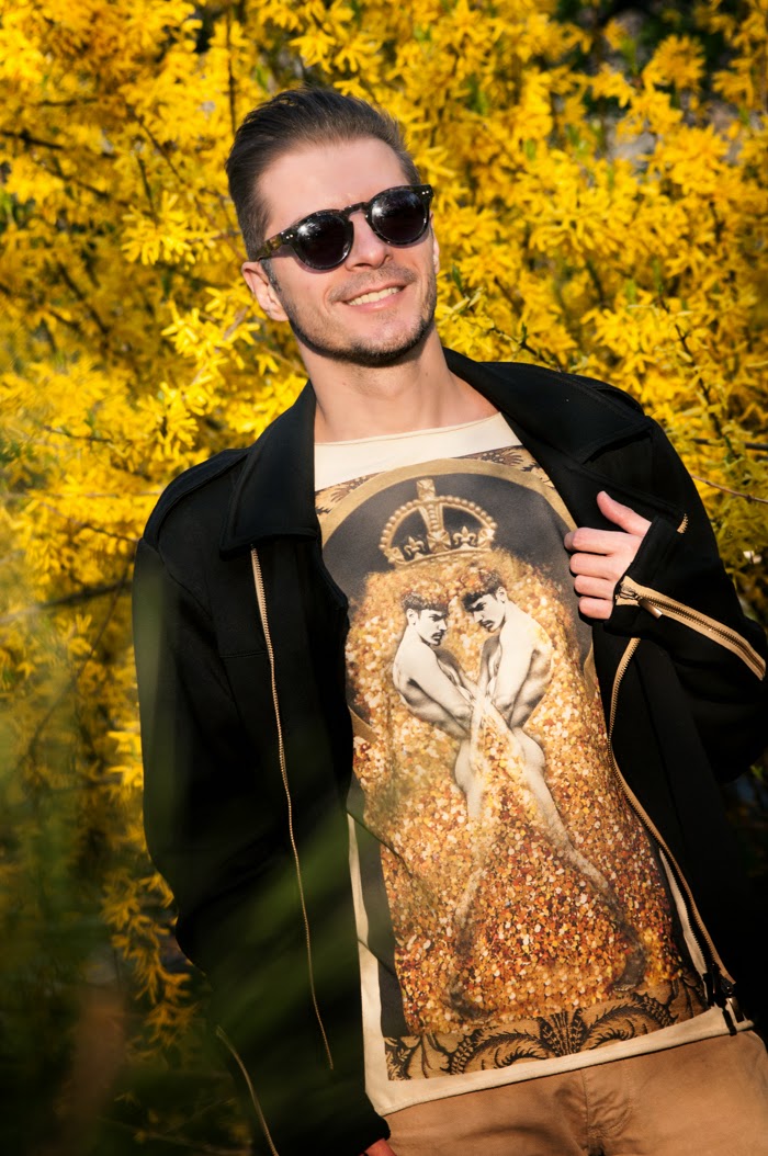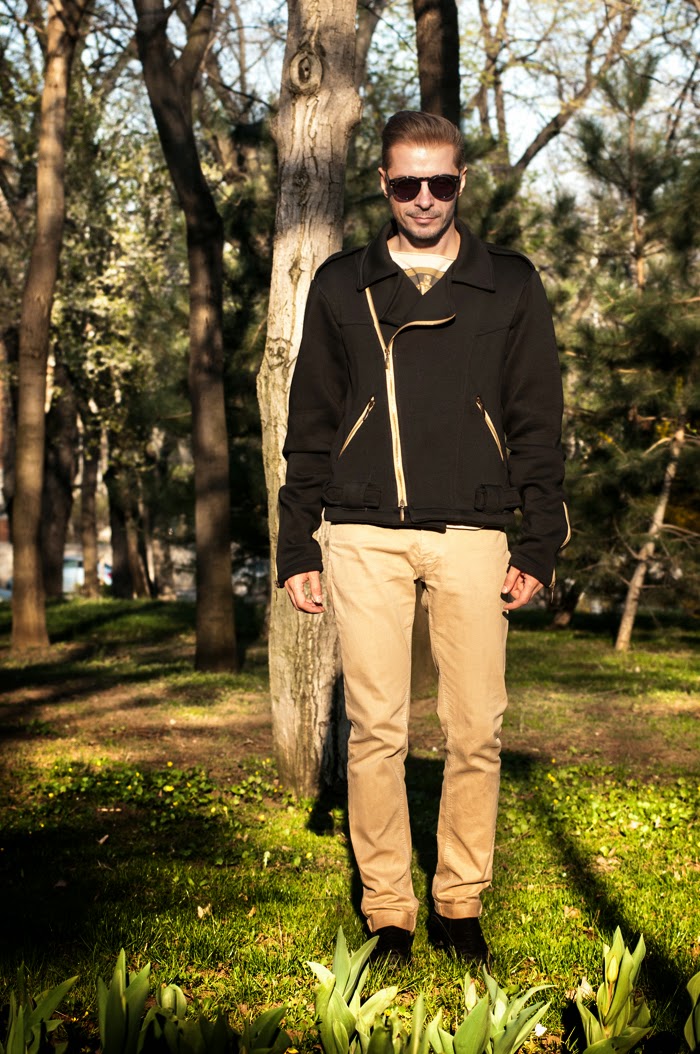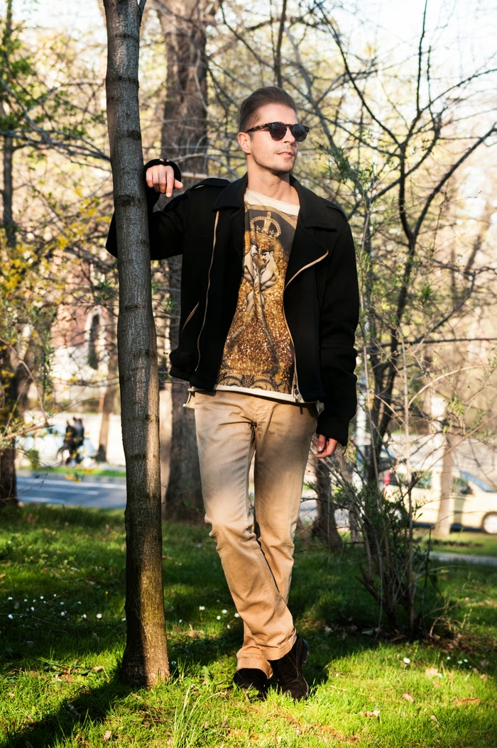 | Le Petit Indigent Tshirt & biker jacket available on Molecule-F, Zara jeans, Enzo Bertini shoes, Illesteva Leonard sunglasses |