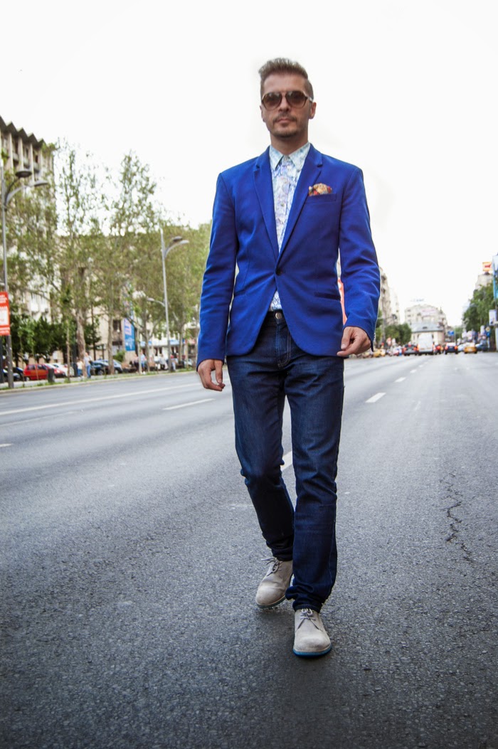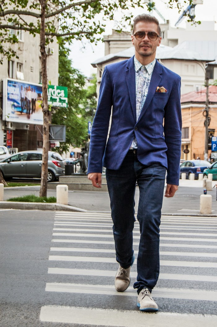 | Zara jacket & pocket square, Desigual shirt, Diesel jeans, ALDO shoes, Ray Ban sunglasses |