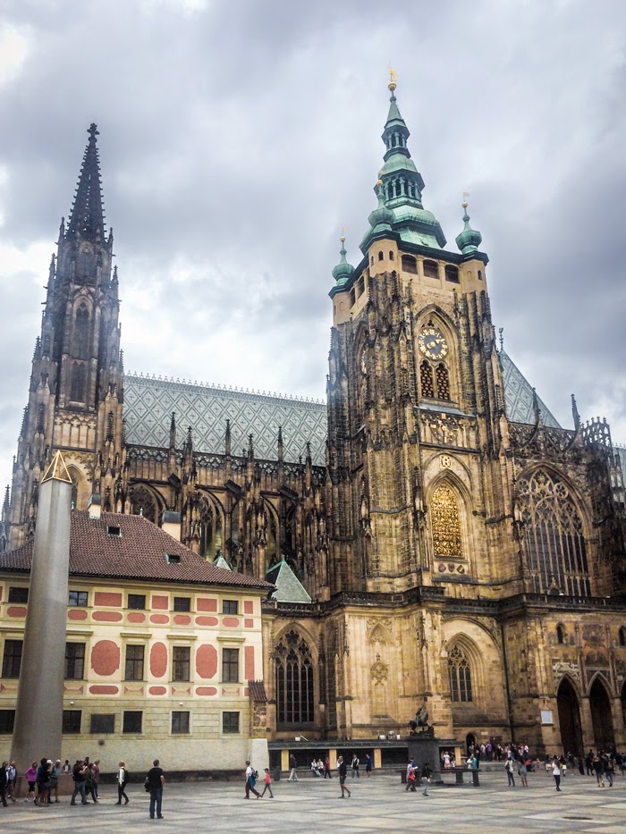 Costruit incepand din secolul al IX-lea, a fost pe rand cetatea de scaun a Boemiei, apoi a Sfantului Imperiu Roman, resedinta presedintelui Cehoslovaciei, iar, dupa separarea de Slovacia, resedinta presedintelui ceh. Intrat in patrimoniul Unesco, ca find cel mai mare castel medieval locuit din Europa, reuneste toate stilurile arhitectonice din mileniul trecut: gotic, romanic, baroc, manierist. Cladirea din complexul castelului care m-a fascinat cel mai mult este catedrala Sfantului Vitus, un monument urias de arhitectura gotica. Ea poate fi vizitata gratuit, insa pentru un tur complet, care sa va perminta sa vedeti toate minunatiile gazduite aici, trebuie sa platiti o taxa.