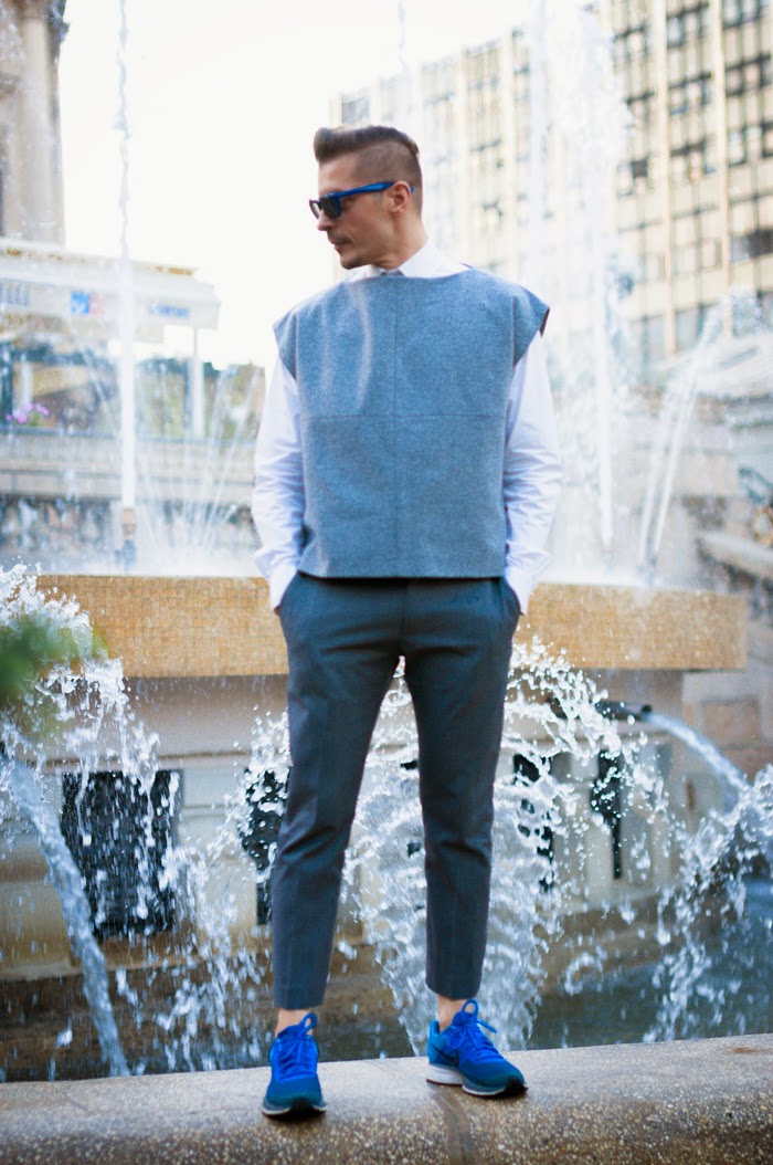 | I wear Crina Bulprich vest, available on Molecule-F, Scotch&Soda shirt, H&M trousers, Illesteva sunglasses, Aldo shoes |